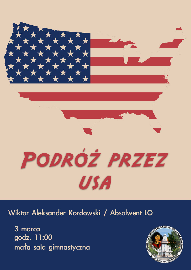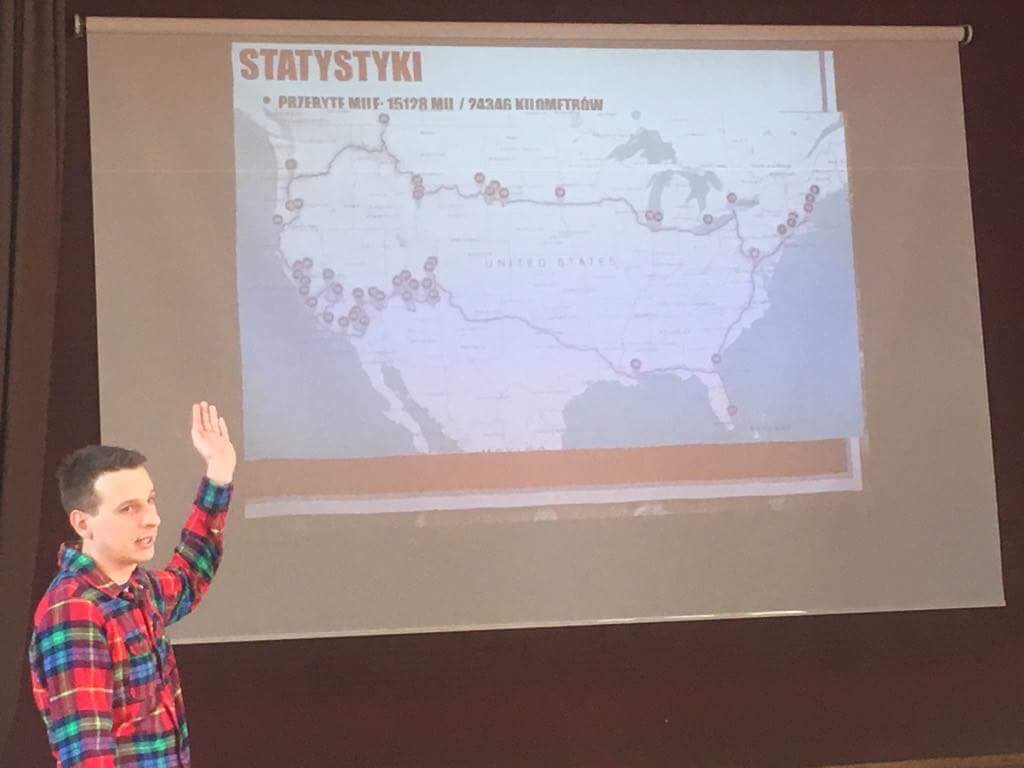 W sobotę 3 marca w naszej szkole odbyło się spotkanie z absolwentem LO – Wiktorem Kordowskim. Zaprezentował wiele ciekawych fotografii ze swojej podróży po USA. Dzięki Niemu, w te sobotnie przedpołudnie przenieśliśmy się do miejsc takich jak: wodospad Niagara, Golden Gate, Mount Rushmore czy Park Yellowstone.