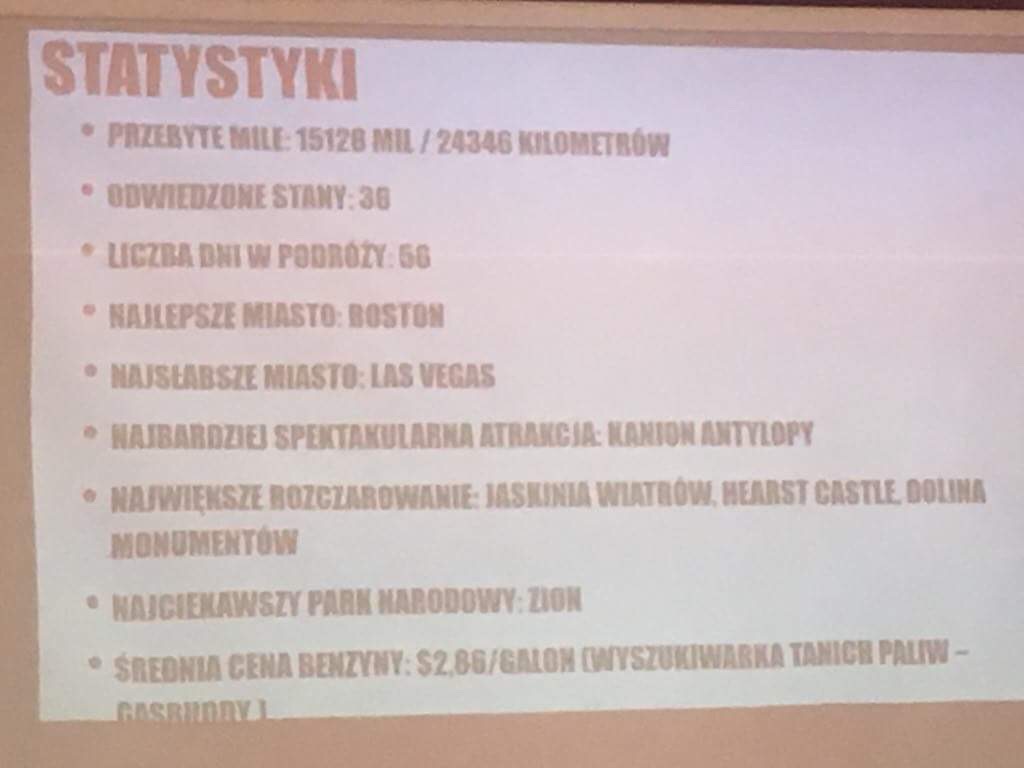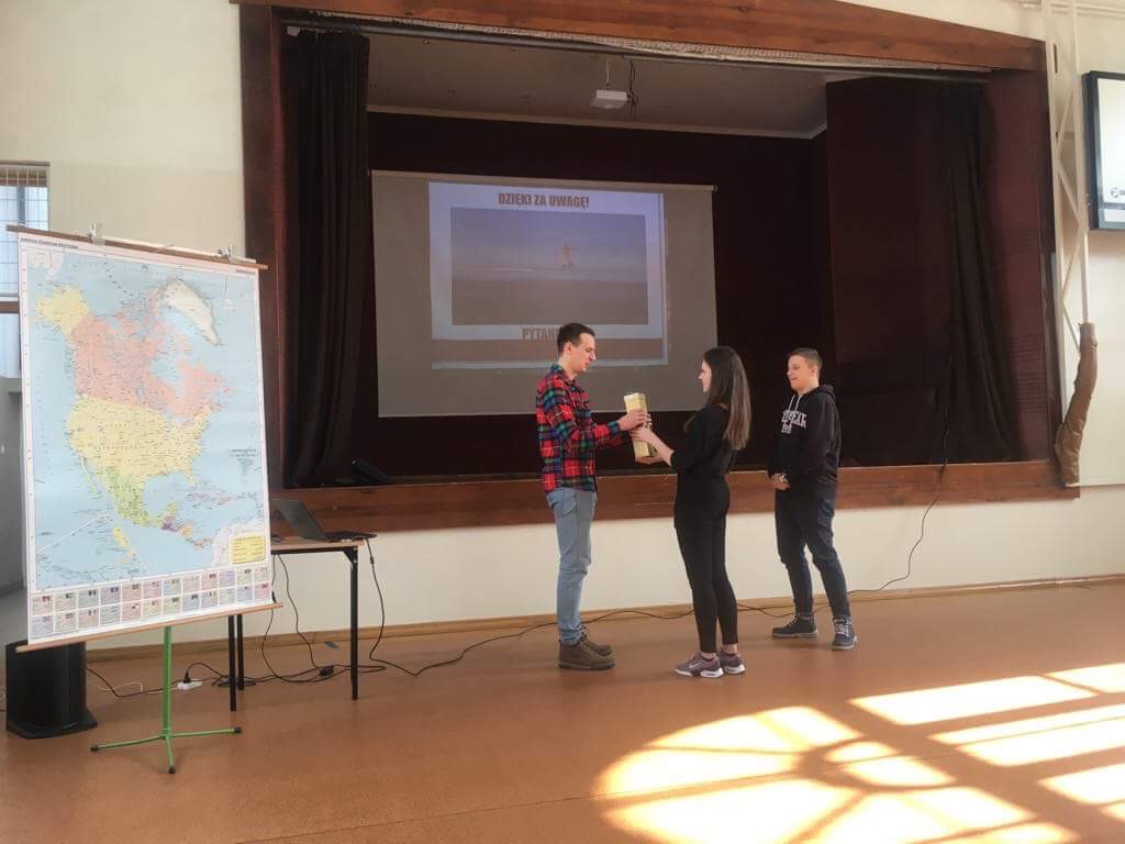 Wiktor podczas prezentacji zadawał pytania dotyczące obiektów turystycznych USA, wśród słuchaczy nagrodę otrzymał Sebastian i Hubert (były to pamiątki przywiezione z podróży).