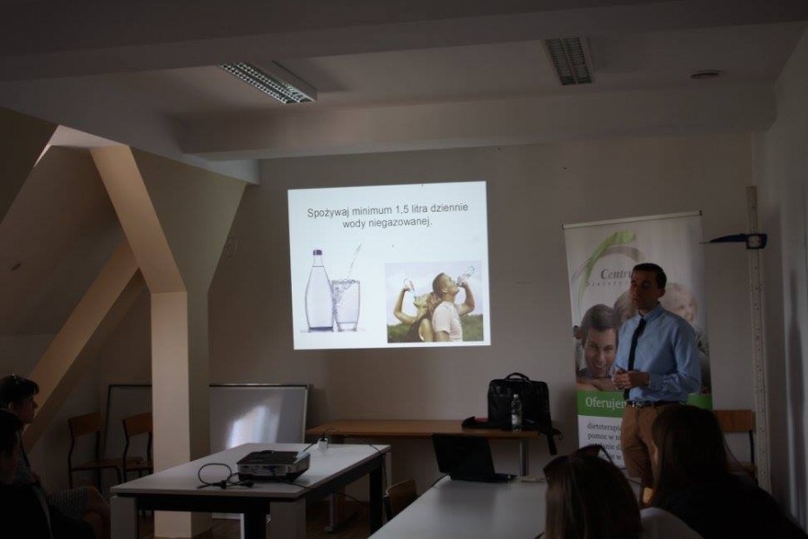 20 maja br. odbyło się spotkanie z dietetykiem Adamem Kuczyńskim- naszym absolwentem. Uczestnicy zajęć mogli wysłuchać prezentacji dotyczącej zasad zdrowego odżywiania się oraz dokonać pomiaru masy ciała, mięśni i tłuszczu. Spotkanie zorganizowane zostało przez szkolną bibliotekę.