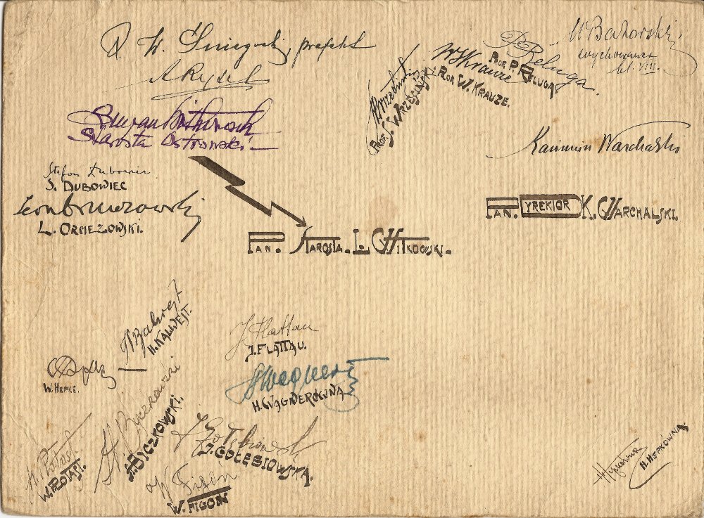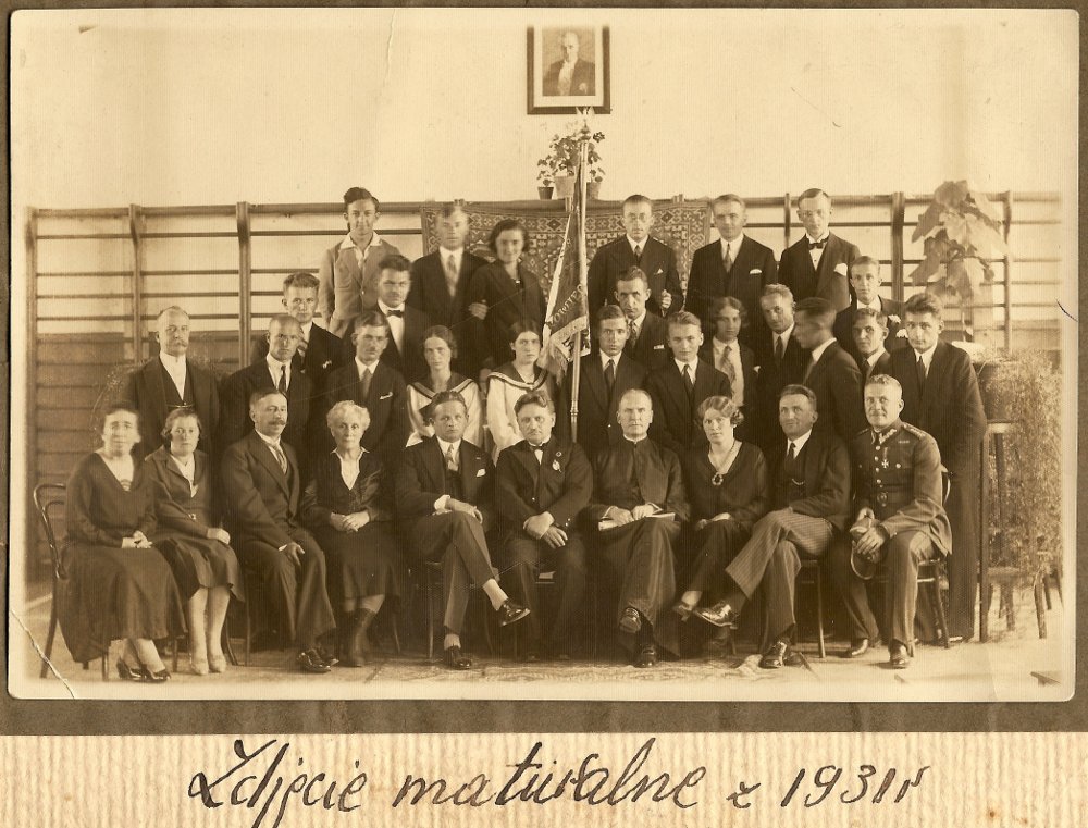 Kilka miesięcy temu rozmawiałem z p. Witoldem Suskim, który prosił mnie o zdjęcia z dawnych lat dotyczące Liceum. Przeglądając teraz stare dokumenty znalazłem dwa zdjęcia z wycieczki do Wieliczki 1930 roku. Na odwrocie jednego z nich koleżanki i koledzy mojego ojca podpisali się. Mój ojciec, Tadeusz Kolasiński nie podpisywał się na tym zdjęciu, natomiast łatwo go zidentyfikować bo jest na obu zdjęciach w okularach. Pozostałych osób nie znam na tyle by je z pewnością rozpoznać. Jest również zdjęcie klasy maturalnej z 1931 roku. Na odwrocie podpisy wielu osób, niektóre czytelnie przepisane. Tu również rozpoznaję swojego ojca Tadeusza Kolasińskiego /prawy górny róg zdjęcia – w okularach/. Pozostałe osoby można próbować powiązać z podpisami.