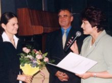Pani Janina Smejkal podczas wizyty w naszej szkole spotkała się z laureatem nagrody ufundowanej przez Państwa Smejkalów – Pawłem Bączykiem. Foto: K. Zawisza