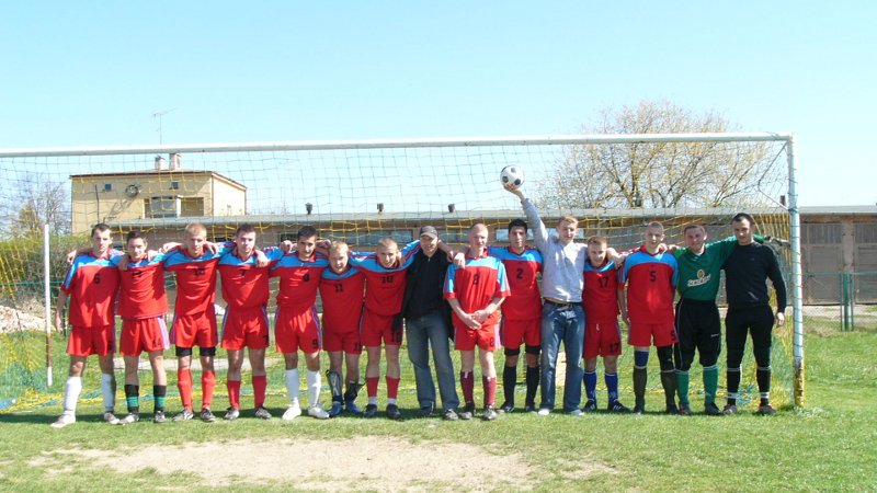 Podobnie było 21 kwietnia w meczu z ZS w Lubiejewie. Pierwszej połowy nie mogliśmy zaliczyć do udanej, gdyż schodziliśmy na przerwę przegrywając 0:1. Ambicja, wola walki i świetne umiejętności naszych reprezentantów spowodowały, że dominowaliśmy w drugiej połowie. Przeciwnik rzadko zagrażał naszemu bramkarzowi i było tylko kwestią czasu zdobycie wyrównującej bramki. Po wejściu rezerwowego napastnika Waldemara Sokołowskiego posypały się gole. Waldemar Sokołowski – 2, Artur Bandarzy – 1. Po 80 minutach mogliśmy się cieszyć ze zwycięstwa 4:1 i mistrzostwa powiatu w piłce nożnej. Pragnę nadmienić, że tytuł ten powrócił do nas po wielu latach zmagań.
