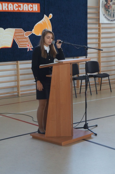 W dniu 1 września rozpoczęliśmy nowy rok szkolny 2016/2017. Uroczystość poprowadzili członkowie Samorządu Uczniowskiego Aleksandra Każuch i Cezary Spiżewski. Zaraz po przywitaniu dyrekcji, nauczycieli, pracowników szkoły, rodziców, uczniów oraz zaproszonych gości przemówił Pan Dyrektor Waldemar Bartosik, który ciepło powitał wszystkich zgromadzonych życząc owocnej pracy w nowym roku.