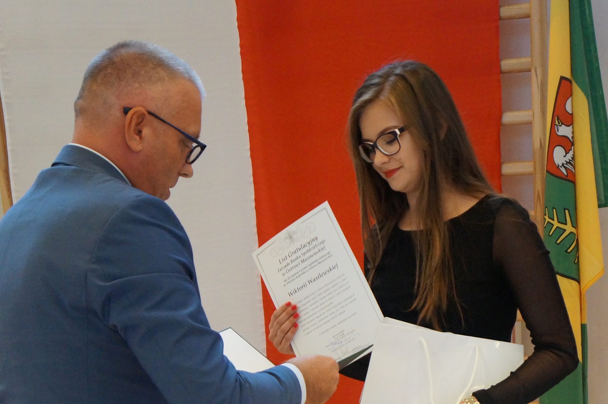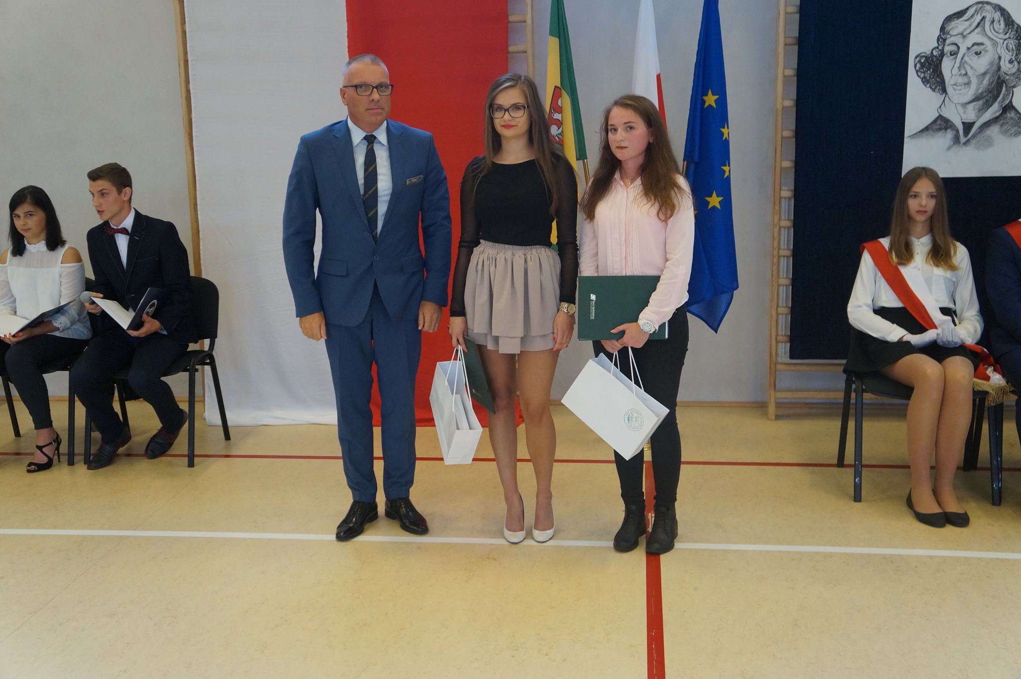 Wiktoria Wasilewska z kl I F ze średnią 5,31 i Marta Bednarczyk z kl. I F ze średnią 5,31. Nagrodę wręczył zastępca prezesa Banku Spółdzielczego – pan Dariusz Kołodziejski.