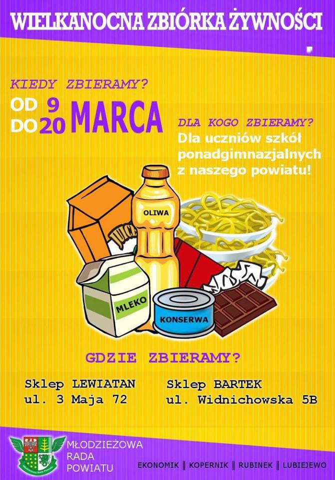 Tradycyjnie w okresie przedświątecznym młodzież szkół ponadgimnazjalnych zaangażowała się w akcję Młodzieżowej Rady Powiatu. Zbiórka żywności odbywała się od 9 do 20 marca w ostrowskich sklepach Bartek, Lewiatan i Vigar. Serdecznie dziękujemy wolontariuszom wszystkich szkół za zbiórkę, a przede wszystkim darczyńcom za hojność. Z zebranych produktów udało się zrobić 30 paczek i zostały one przekazane najbardziej potrzebującym uczniom.