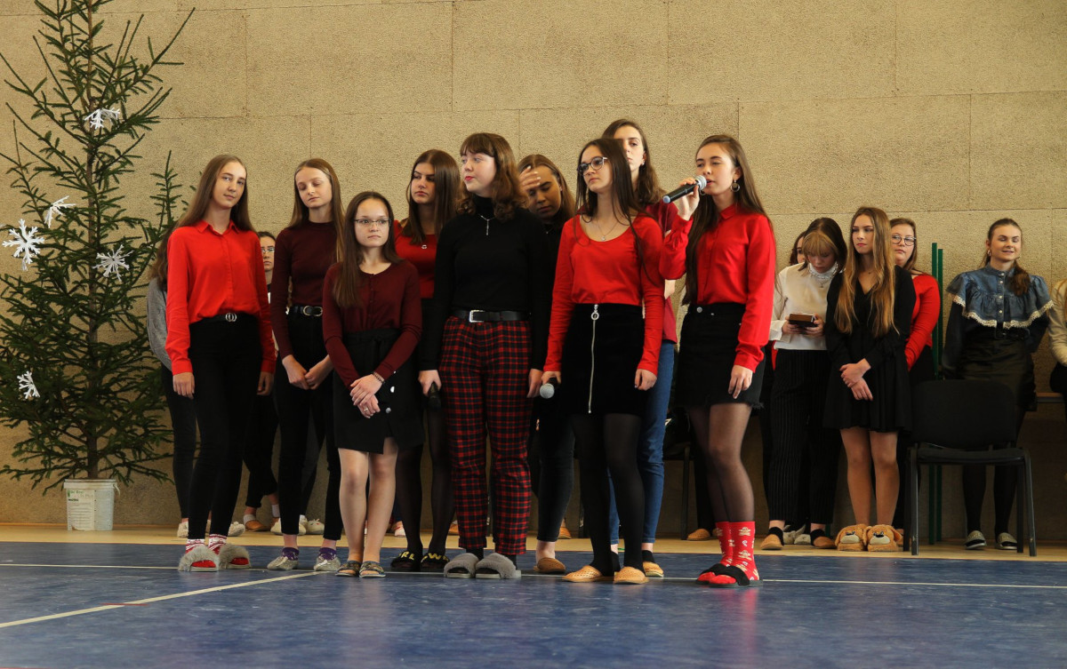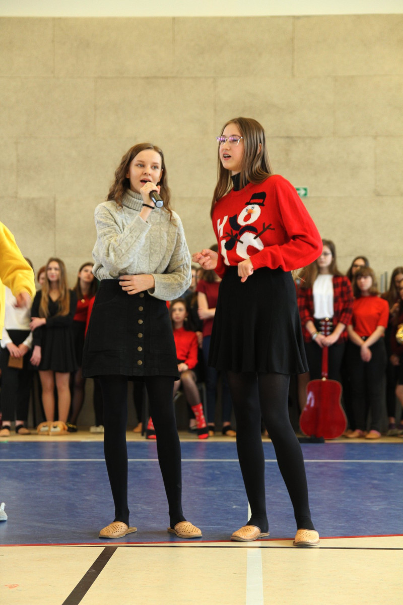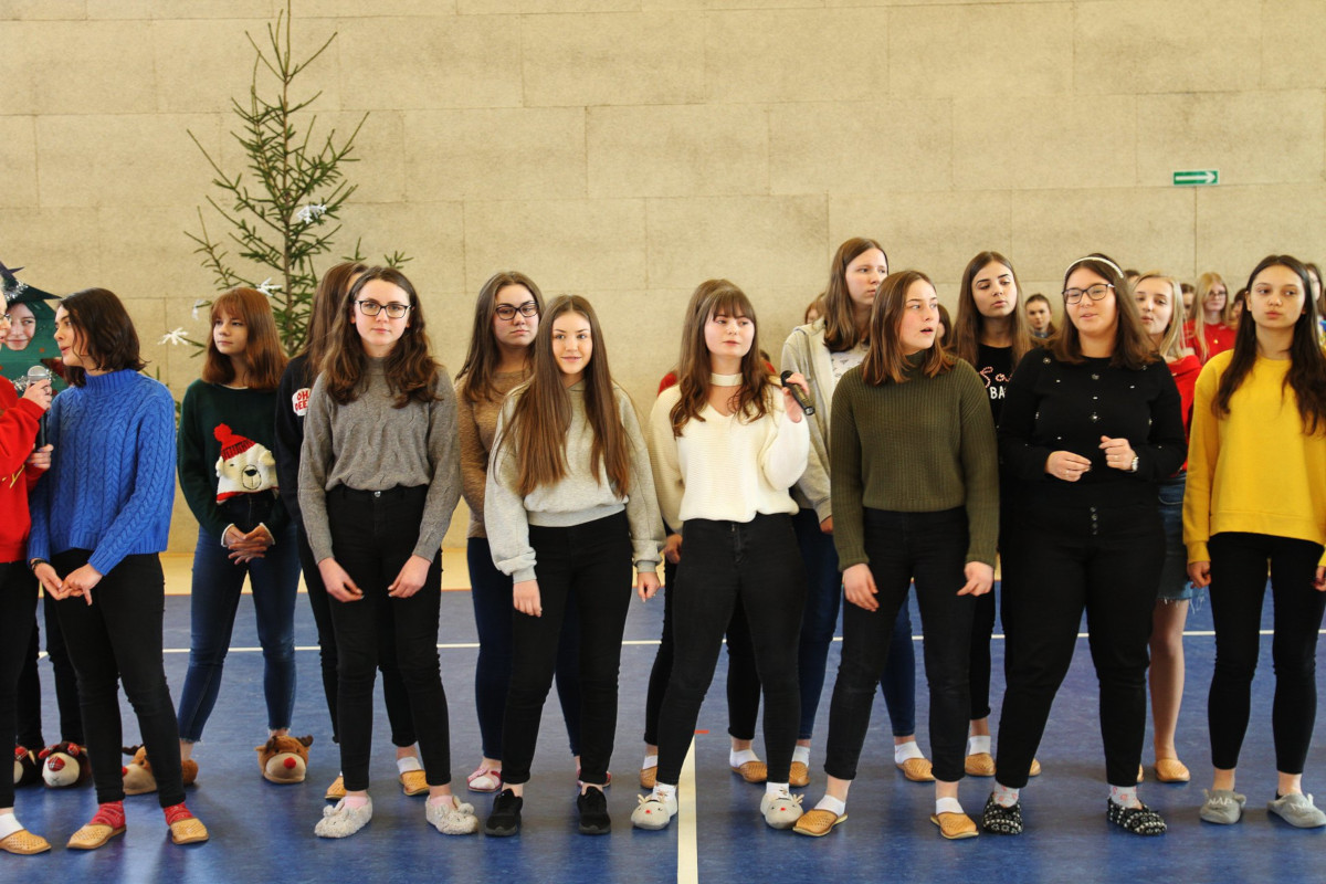 19 grudnia 2019 r. uczniowie klas pierwszych wraz z panem dyrektorem, Waldemarem Bartosikiem oraz nauczycielami uczestniczyli w corocznym Wielojęzycznym Koncercie Piosenek Świątecznych. W tym magicznym czasie, nie sposób jest nie nucić popularnych utworów, które umilają nam czas oczekiwania do Świąt Bożego Narodzenia. Z tej okazji, nauczyciele języków obcych wraz z uczniami przygotowali Koncert najpopularniejszych piosenek i kolęd w różnych językach- angielskim, francuskim, niemieckim, rosyjskim oraz polskim. Celem koncertu było wprowadzenie wszystkich w świąteczny nastrój, wyciszenie się i dostrzeżenie tego, co w świętach jest najważniejsze- spokój i czas spędzony bez pośpiechu z najbliższymi. Młodzież zaśpiewała piękne utwory i kolędy, którym wtórowały różnorodne instrumenty muzyczne,nadając występowi podniosły charakter. Dziękujemy serdecznie wszystkim nauczycielom języków obcych oraz uczniom za przygotowanie tej uroczystości. Mamy nadzieję, że nasza widownia poczuła ducha zbliżających się świąt i będzie miło wspominała ten koncert. W imieniu wszystkich nauczycieli języków obcych oraz występujących uczniów życzymy wszystkim Wesołych Świąt????