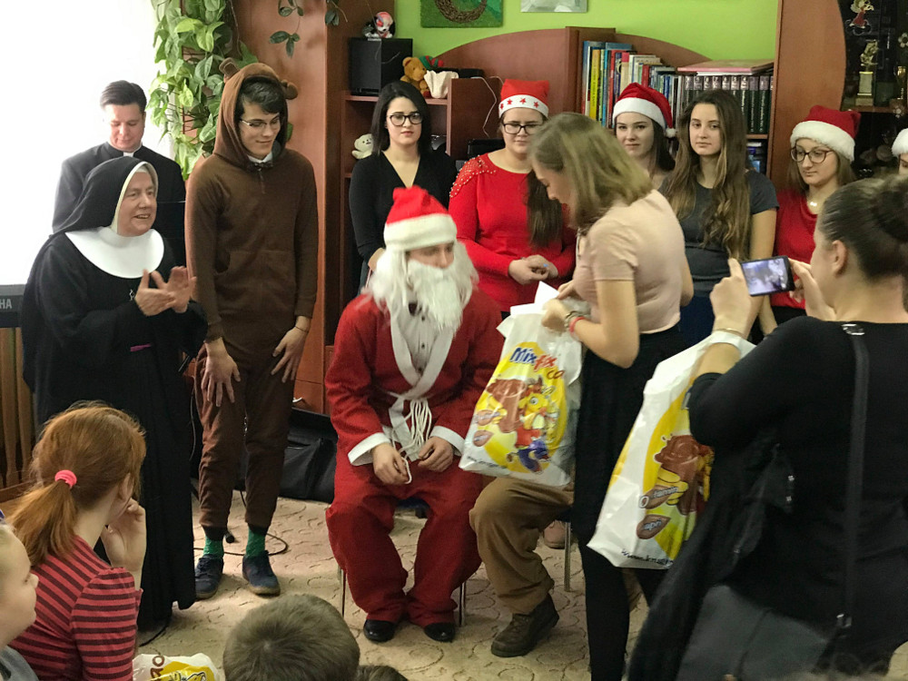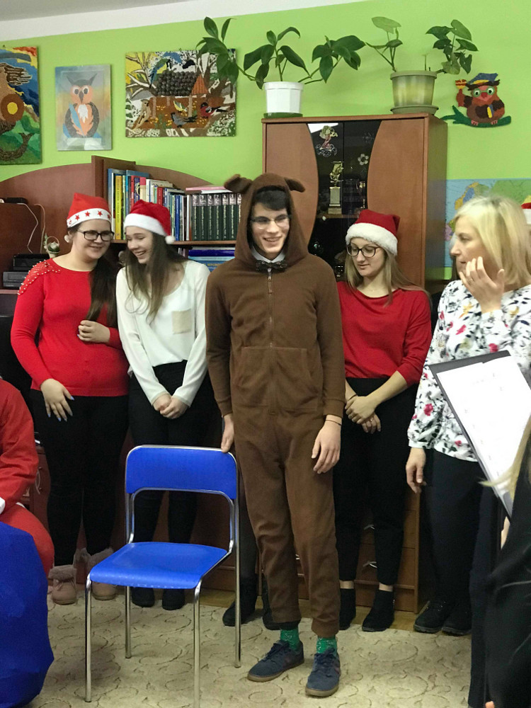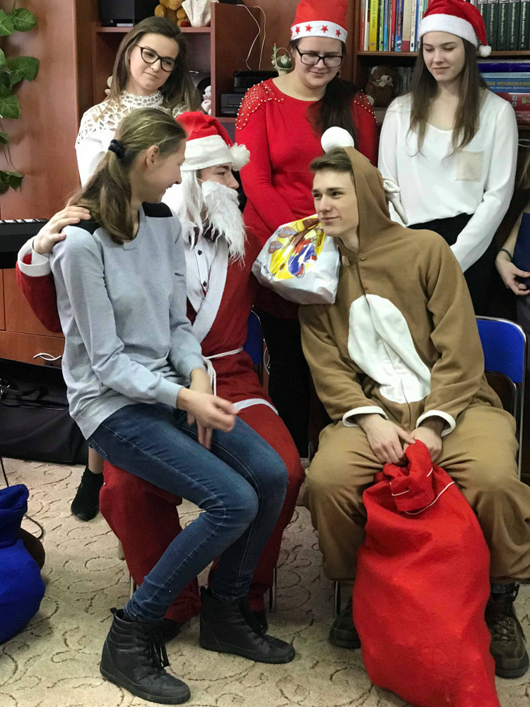 11 grudnia uczniowie klasy IIE wraz z kilkoma osobami z innych klas odwiedzili Specjalny Ośrodek Wychowawczy Zgromadzenia Sióstr Franciszkanek Rodziny Maryi w Brańszczyku. Dla dzieci tam przebywających przygotowali krótki montaż słowno-muzyczny pod opieką pani Doroty Olender i pani Bożeny Nowak. W organizację tego wyjazdu zaangażowała się również pani Małgorzata Wiercińska. Dzieci i siostry otrzymały paczki świąteczne, które od kilku lat funduje Natur Produkt Pharma. Firma ta również zakupiła paczki dla dzieci ze Specjalnego Ośrodka Szkolno-Wychowawczego w Zuzeli oraz Zespołu Szkół Specjalnych w Lubiejewie.