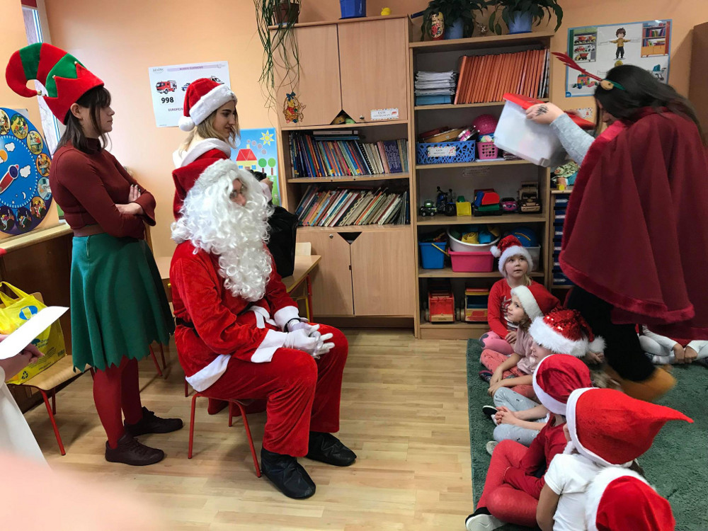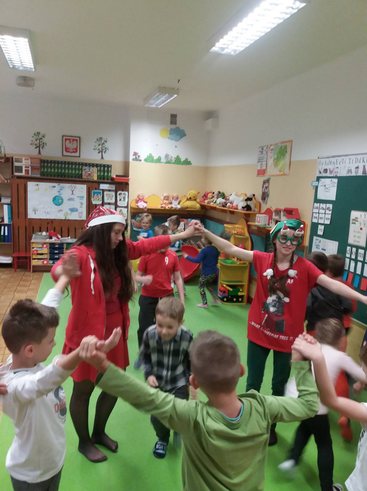 Wizyta w przedszkolu jest zawsze pełna radości i pozytywnej energii. Były wspólne zabawy, tańce i piosenki dla Mikołaja i z Mikołajem. Było też mnóstwo trudnych pytań… zadawanych przez dzieciaki ![]()