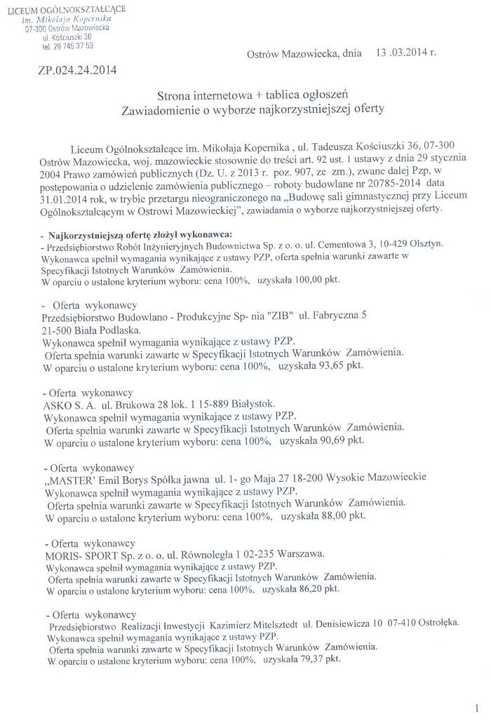 Ostrów Mazowiecka 13.03.2014r.