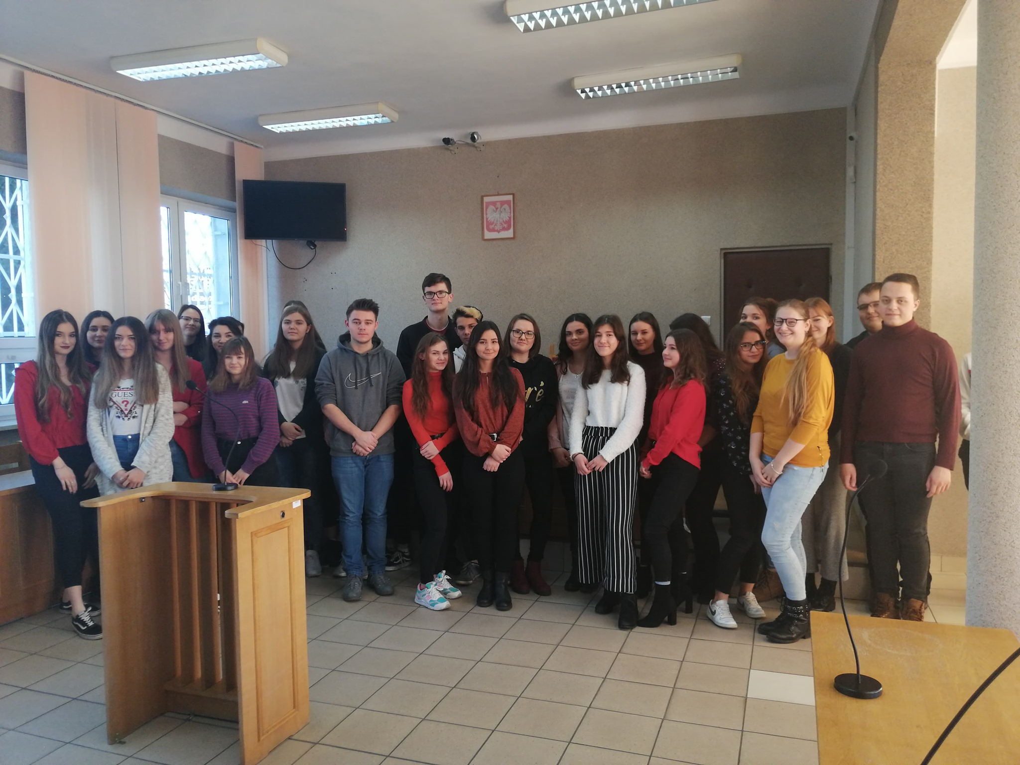 W dniach 13 listopada i 11 grudnia, klasy 3h i 3g brały udział jako publiczność w rozprawach sądowych w Sądzie Rejonowym, w Ostrowi Mazowieckiej. Obie rozprawy były z zakresu prawa karnego. Pierwsza rozprawa dotyczyła pobicia, a my bacznie słuchaliśmy zeznań oskarżonych i świadków, niestety poszkodowany się nie stawił się na rozprawę. Z tego powodu pani sędzia odroczyła sprawę do 16 grudnia 2019r. Następnie odbyła się druga rozprawa dotycząca przemocy. Oskarżonemu zostały postawione zarzuty znęcania się nad bratem i używania przemocy wobec niego. Wysłuchaliśmy aktu oskarżenia wyczytanego przez prokuratora, potem zeznań oskarżonego, a następnie zeznań świadków. Na rozprawę nie stawiło się dwóch kluczowych świadków i w związku z tym sprawa została odroczona do 9 stycznia 2020 roku. W przerwach obu rozpraw, pani sędzia tłumaczyła nam działanie sądu i chętnie odpowiadała na nasze pytania. Wizyta w sądzie była dla nas nowym i bardzo ciekawym doświadczeniem.