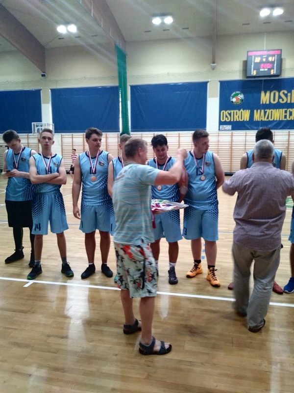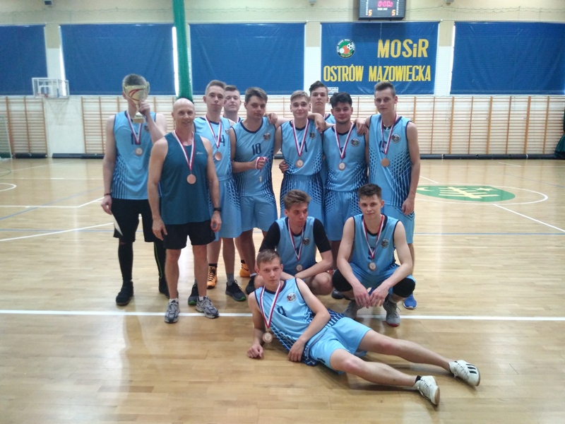Nasza reprezentacja koszykówki chłopców zdobyła brązowe medale w Mazowieckich Igrzyskach Młodzieży. Na pierwszym miejscu uplasowała się drużyna I LO z Siedlec, przegraliśmy nieznacznie walkę o drugie miejsce z I LO z Ostrołęki 41 : 32. Zabrakło trochę czasu na odrobienie strat, czwarta kwarta należała do nas. Chłopcy dali z siebie dużo sił i „wylali” dużo potu na parkiecie, bardzo ciężko było grać w tak wysokiej temperaturze. Doceniam dużą wolę walki i bardzo dobre umiejętności koszykarskie.
