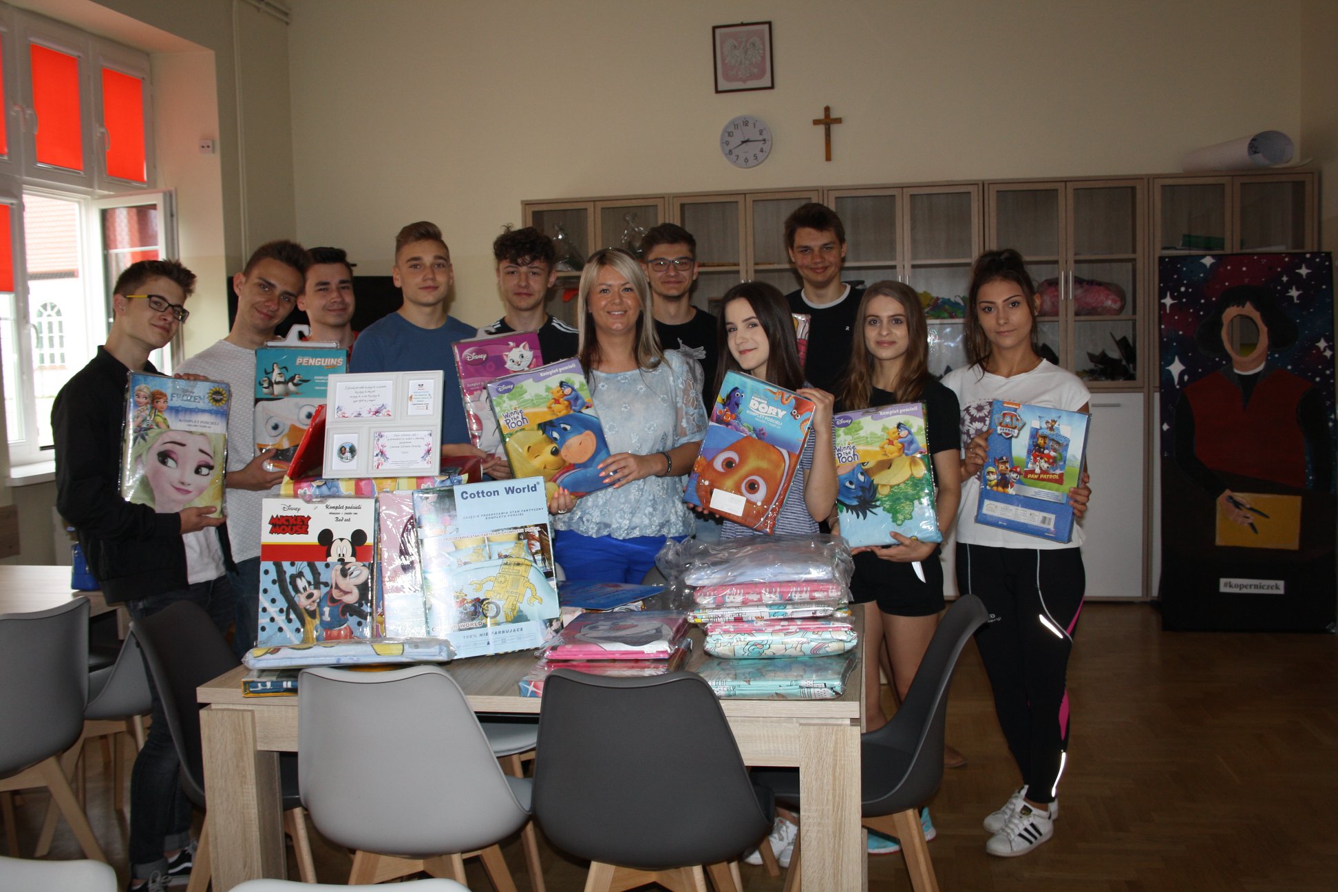 „Dzisiejsza wizyta w Centrum Zdrowia Dziecka na oddziale Onkologii Dziecięcej, wzbudziła wśród nas wiele emocji. Mieliśmy możliwość zobaczenia, na czym polega i jak wygląda leczenie, wyposażenie i Centrum „od środka”. Nasze ogromne zdziwienie wywołało pozytywne nastawienie i uśmiech na twarzach chorych dzieci, którego nie jedna zdrowa osoba mogłaby pozazdrościć. Chęć walki z chorobą jest w nich niesamowita, a sprzyja temu atmosfera panująca, nie tylko na tym oddziale, ale w całym Centrum. Personel niczym „dobre ciocie”, umilają pobyt dzieciom, aby choć na chwilę zapomniały o chorobie. My również postanowiliśmy w podobny sposób umilić dzieciom ten czas, przekazując zebraną w naszej szkole pościel z wizerunkiem postaci z bajek. Jak się na miejscu dowiedzieliśmy, oddział onkologiczny jest jedynym oddziałem, na którym łóżka szpitalne przykryte są wyłącznie bajkową pościelą.