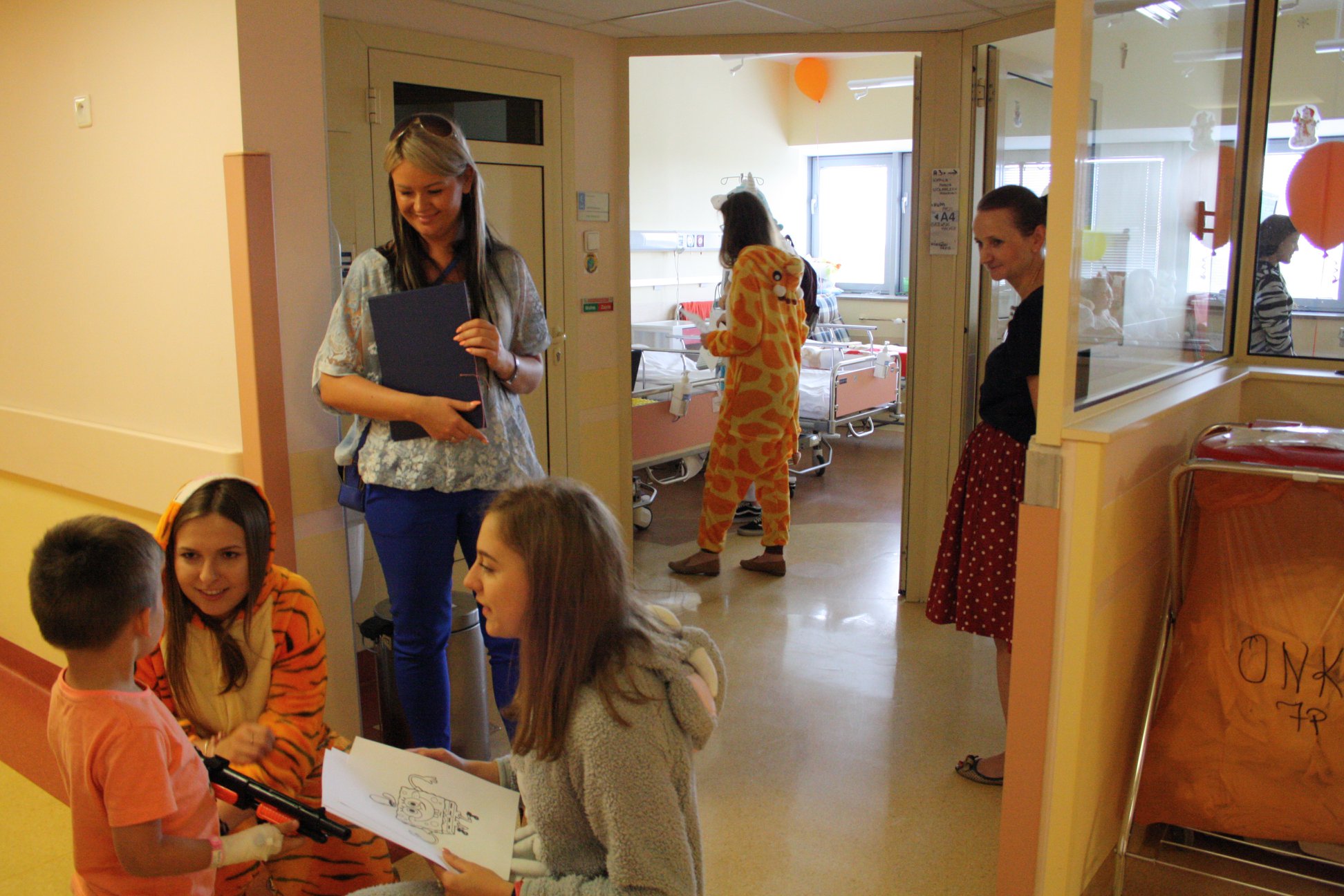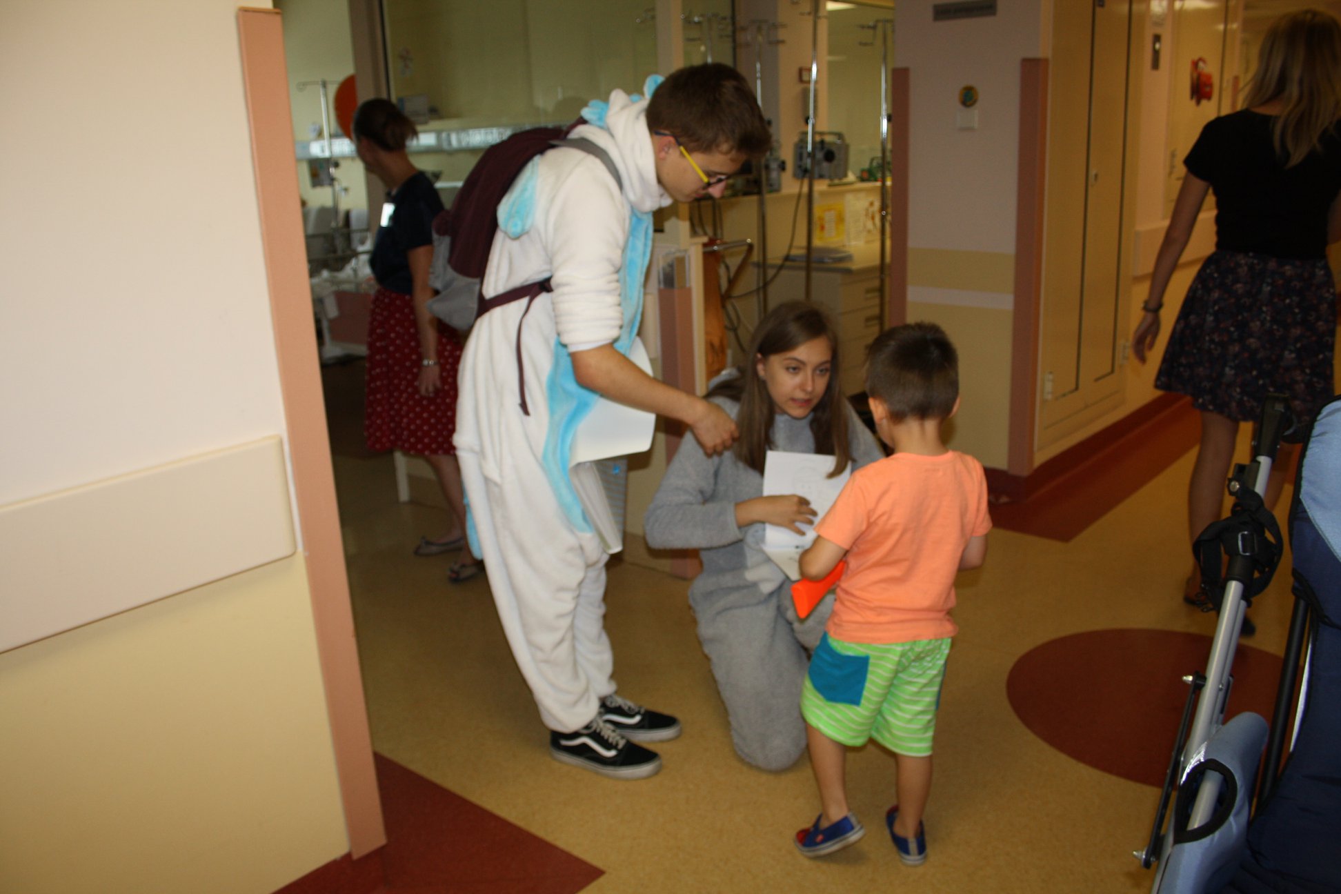 Pobyt w szpitalu często bywa długi i trudny, nasza wizytą chcieliśmy także umilić dzieciakom, choć krótką chwilę. Odwiedziliśmy także oddział onkologiczny, gdzie nasi wolontariusze mogli porozmawiać z pacjentami, wspólnie pokolorować, a nawet tworzyć niektórym tatuaże ![]()